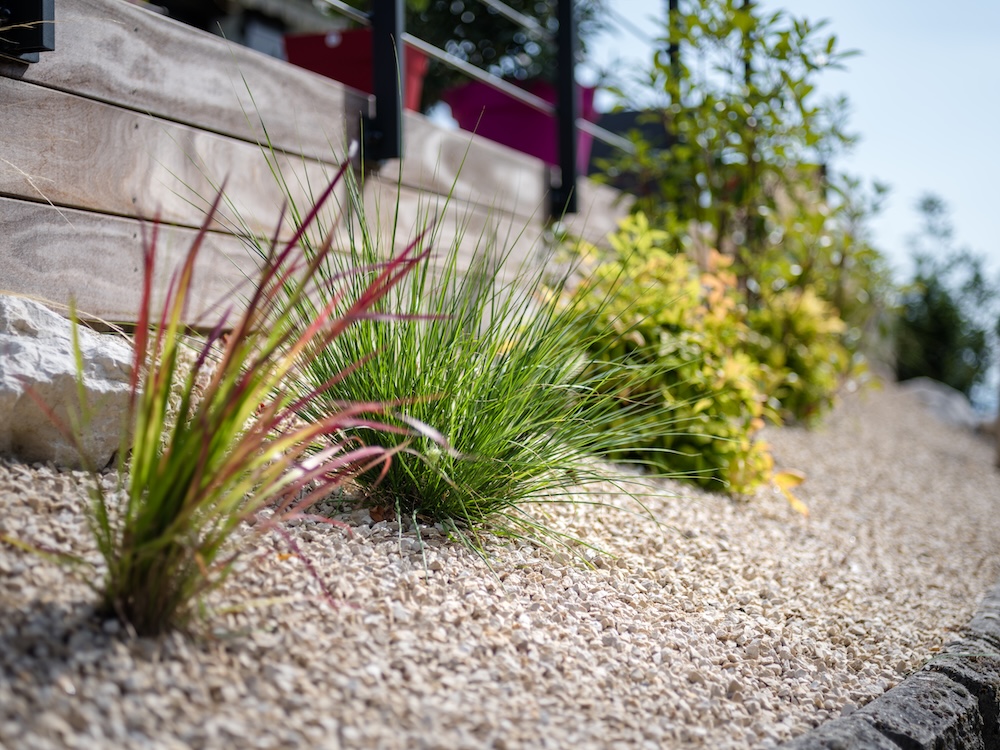 Les graviers, galets ou paillis d’ardoise offrent une excellente tenue dans le temps et demandent peu d’entretien. Ils apportent une touche contemporaine, méditerranéenne ou très graphique selon les matériaux choisis.